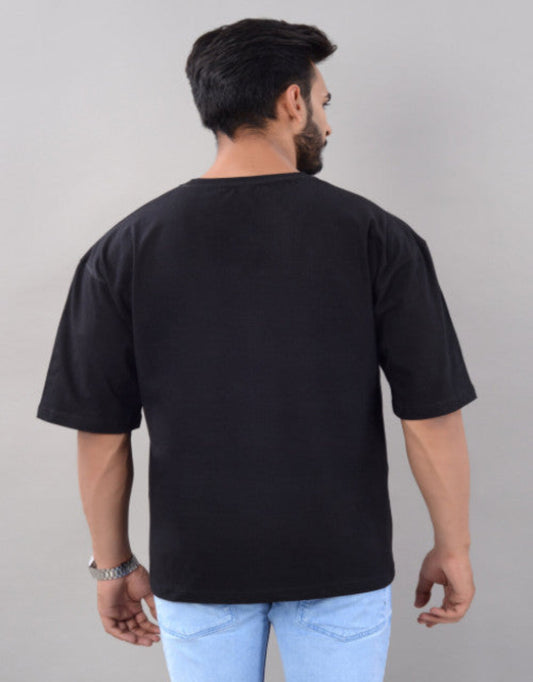 Cotton Blend Oversize Loose Fit Drop Shoulder Round Neck Half Sleeve Graphic Printed Black T-Shirt for Men (SIZE- M,L,XL,XXL)